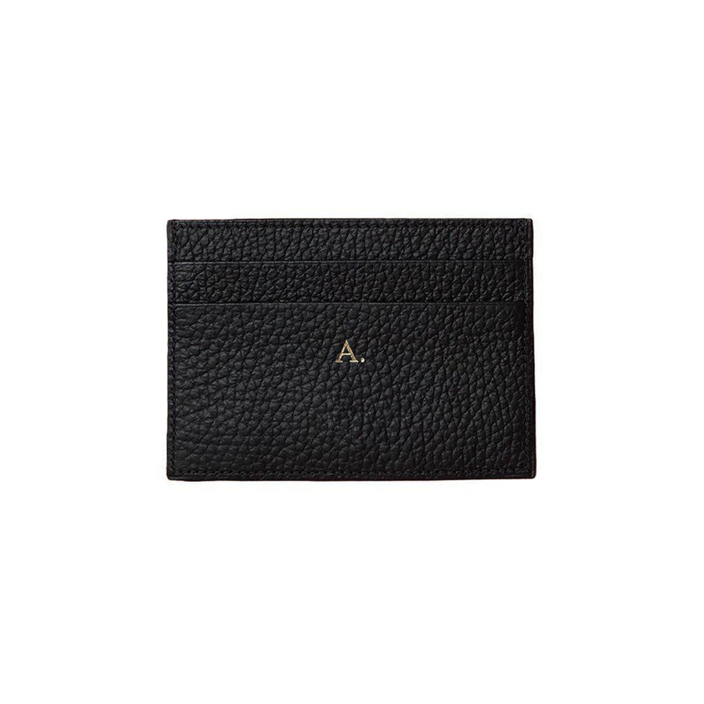 Unser Bestseller: Kartenhalter aus schwarzem, genarbtem Leder.